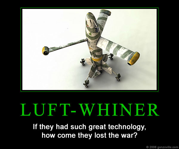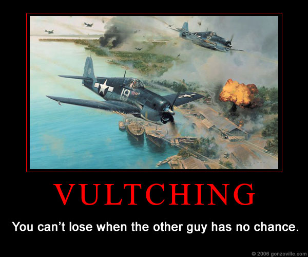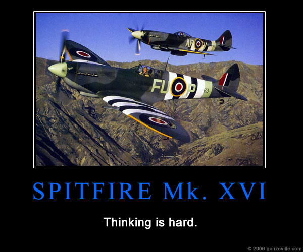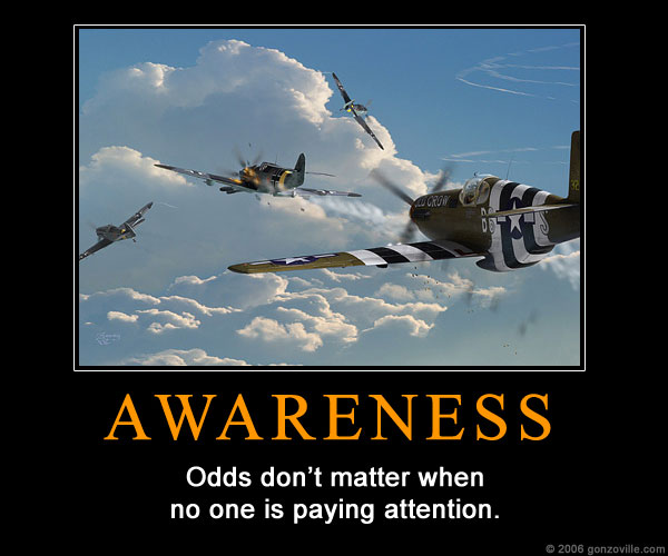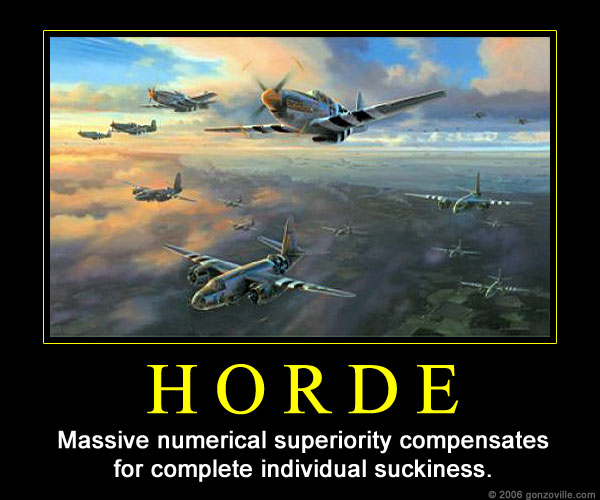 Some folks on the Aces High BBS were goofing around with some despair.com style “motivators” for the game. Given what goes on in it, there is a lot to get sarcastic about. So I did a few as well. Funny thing is that they apply to just about any MMOG flight sim … some things never change. I’ve put the 16 best of these designs here.